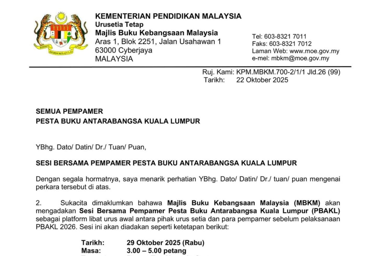 SEMUA PEMPAMER PESTA BUKU ANTARABANGSA KUALA LUMPUR YBhg. Dato/ Datin/ Dr./ Tuan/ Puan, SESI BERSAMA PEMPAMER PESTA BUKU ANTARABANGSA KUALA […]