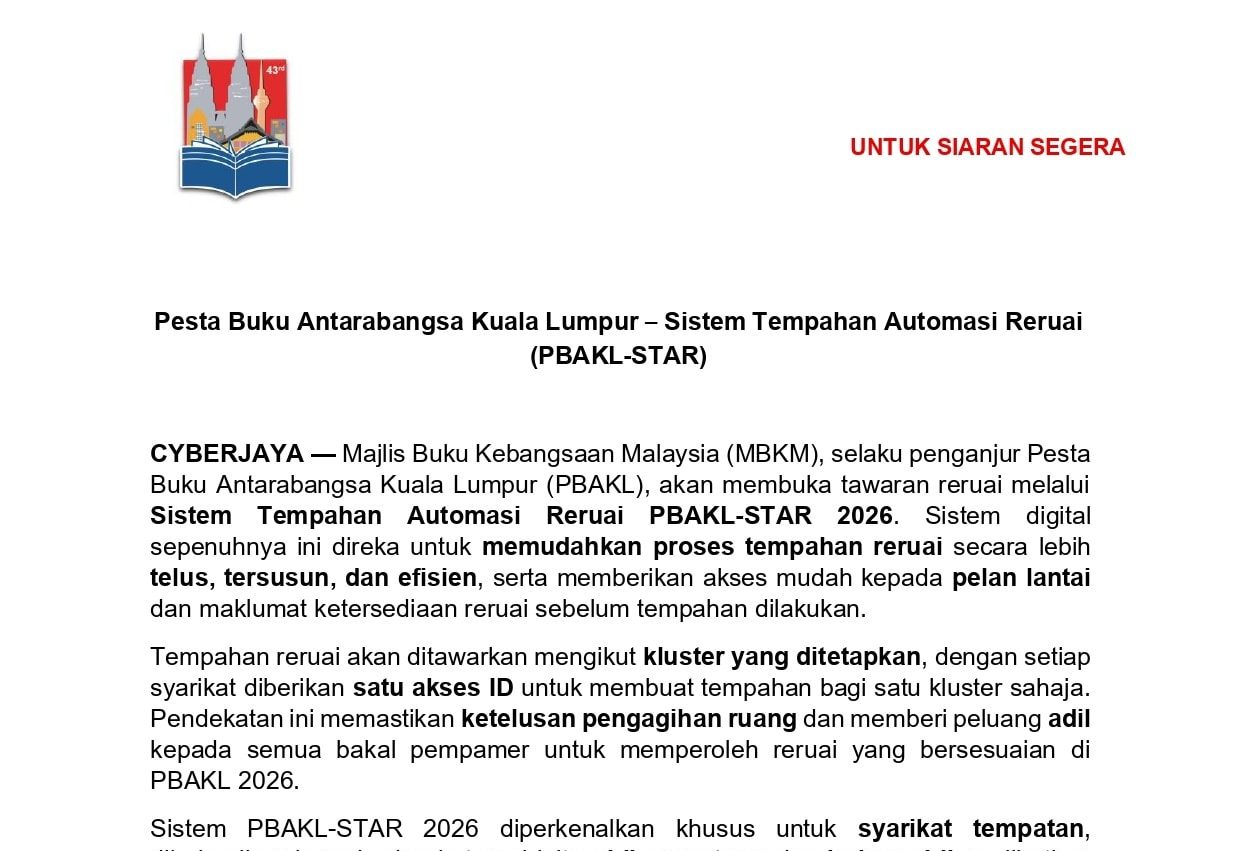 Pesta Buku Antarabangsa Kuala Lumpur – Sistem Tempahan Automasi Reruai (PBAKL-STAR) CYBERJAYA — Majlis Buku Kebangsaan Malaysia (MBKM), selaku penganjur […]