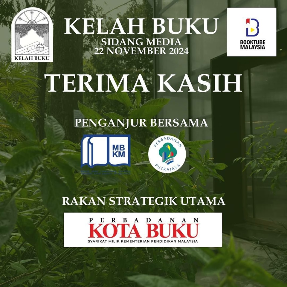 Terima kasih yang tidak terhingga kepada penganjur bersama Kelah Buku iaitu Majlis Buku Kebangsaan Malaysia, Perbadanan Putrajaya dan Rakan Srategik Utama iaitu Perbadanan Kota Buku.