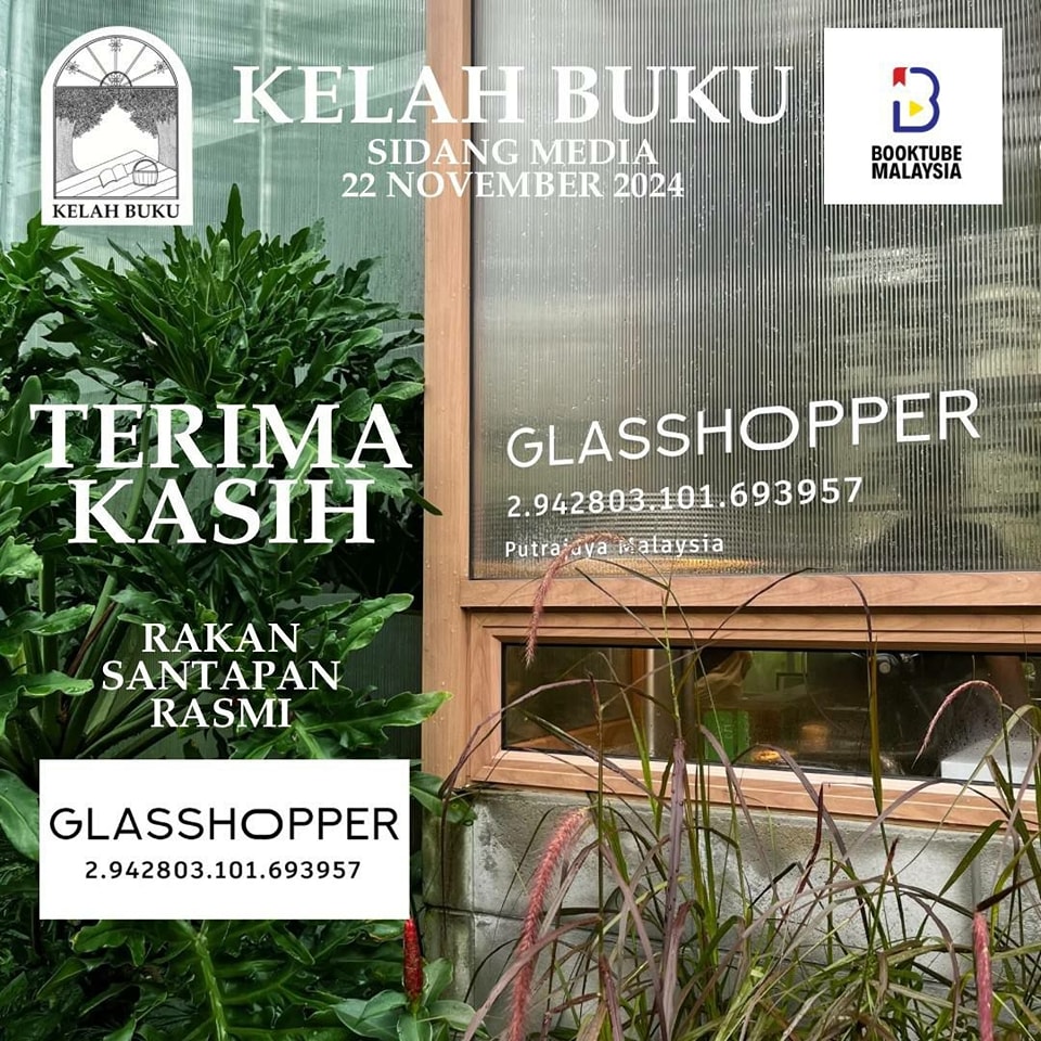 Terima kasih juga kepada The Glasshopper atas kesudian menjadi Rakan Santapan Rasmi untuk Sidang Media Kelah Buku. Kami sangat hargai usaha The Glasshopper menyediakan tempat yang nyaman dan layanan yang amat baik untuk acara ini. Moga banyak lagi kerjasama yang boleh kita gerakkan pada masa akan datang.